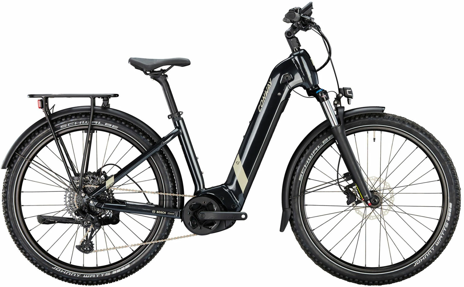 Subtle and noble – this not only applies to the look of the Conway deep entry e-MTB Cairon 3.0 Wave, because the inner values are also convincing. Bosch Performance Line CX Gen.4 drive with 85 Nm paired with the big 625 Wh battery and SRAM components – this bike will take you anywhere.