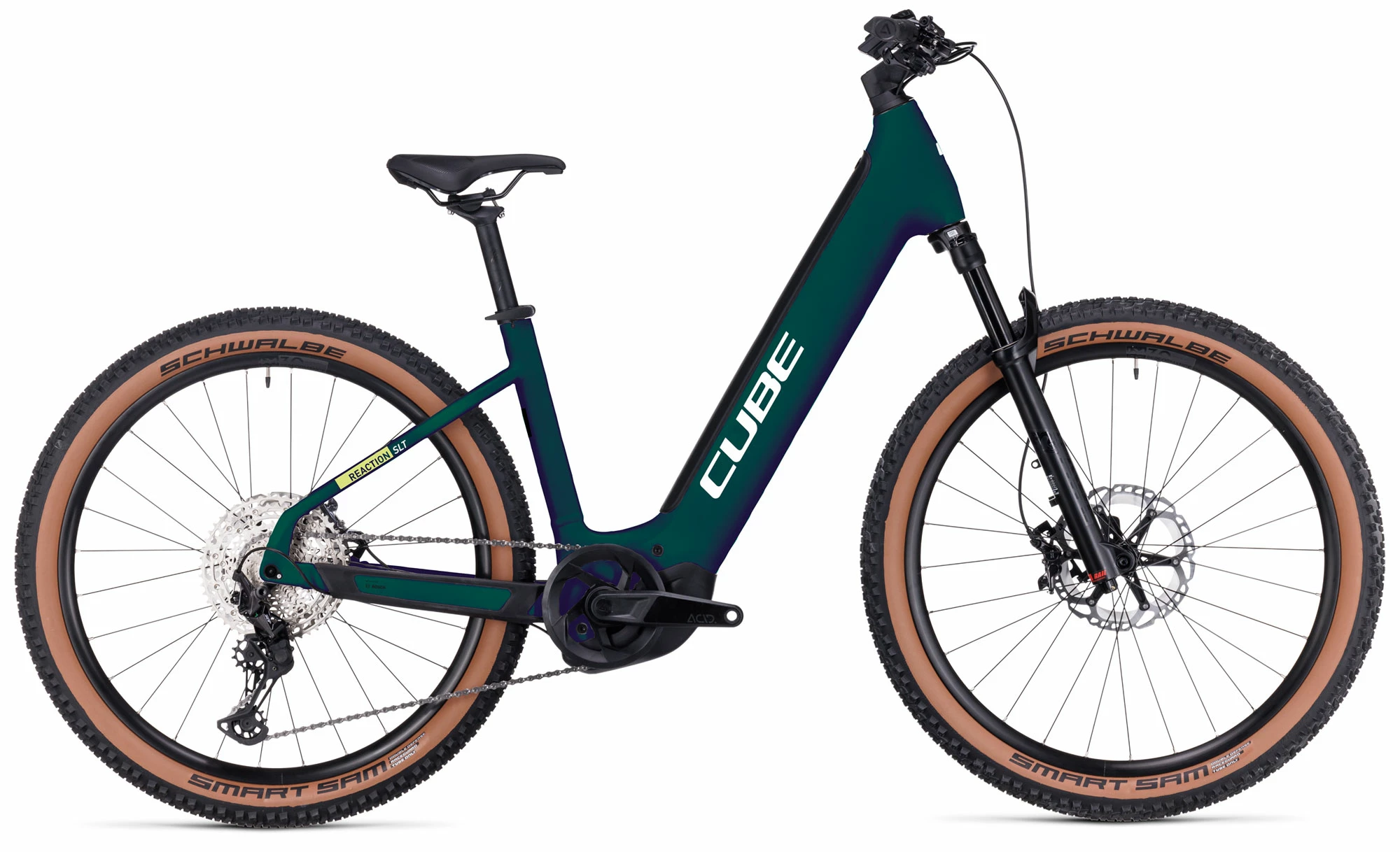 Adventurous riding has never looked so attractive. The CUBE Reaction Hybrid SLT 750 is built around a big-capacity PowerTube battery so you can ride further, no matter which frame design or size you choose.