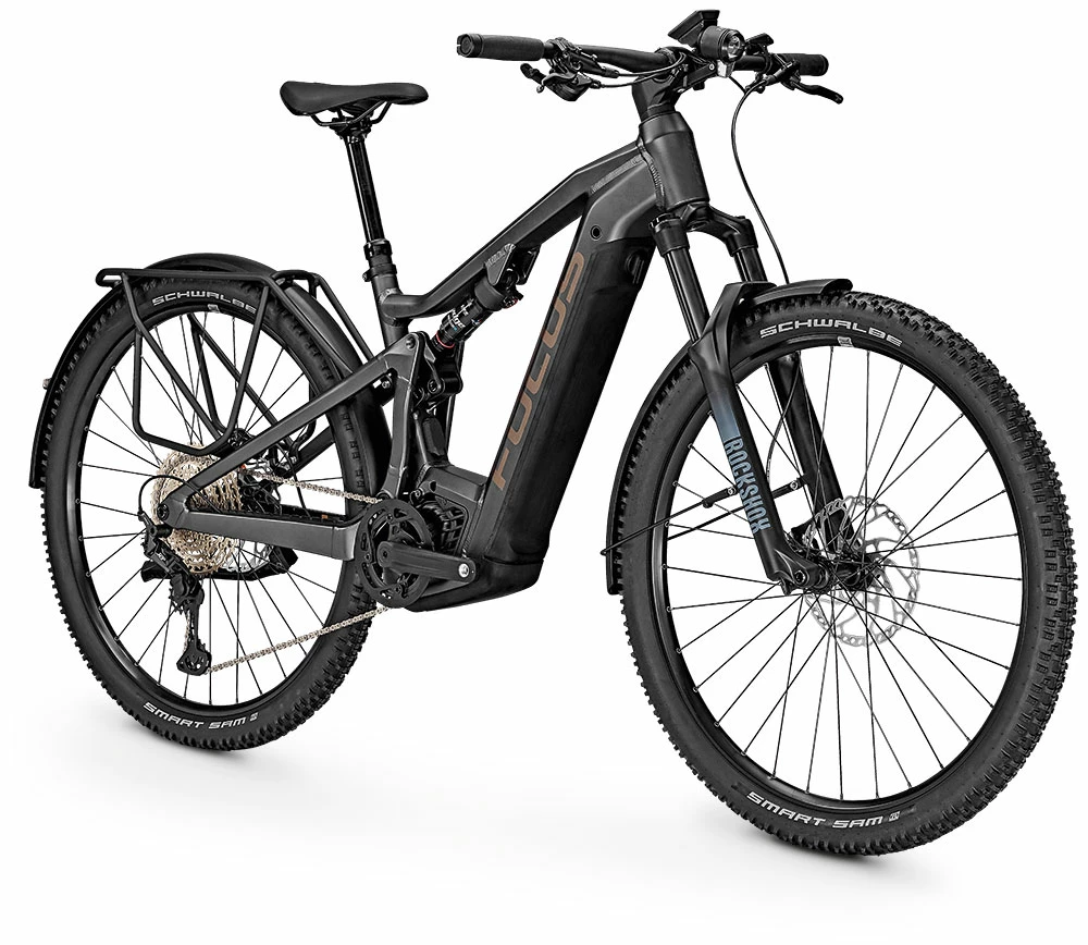 The FOCUS THRON² EQP offers maximum versatility. With 120 mm / 130 mm F.O.L.D. travel and 29″ wheels, the THRON² is at home on the trail and gets even more out of every ride thanks to the Bosch Performance CX (Smart System) e-drive with 750 Wh. With luggage rack, mudguards, kickstand and light, this true touring bike opens up a whole new range of possibilities, from bikepacking to commuting.