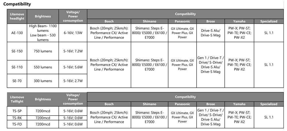 - 1 feu arrière Litemove TS-FD pour E-Bike